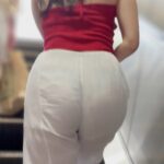 生地が薄過ぎて黒Tバックが主張しまくり。