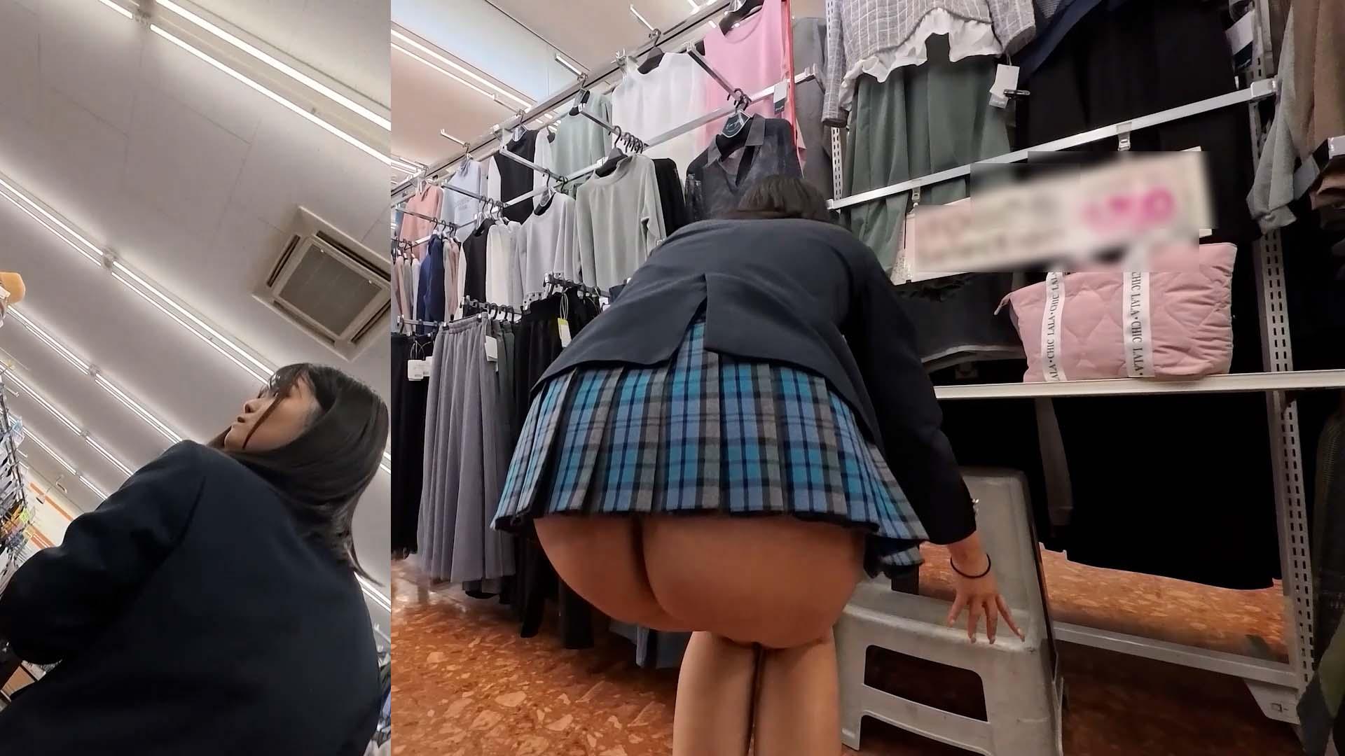 お店の中でお尻が半分出て買い物をしているビッチです♡