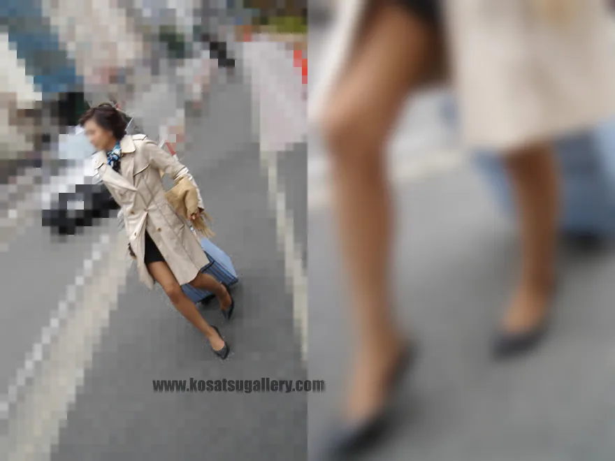 ブラウンのストッキングに包まれた脚線美を街撮り